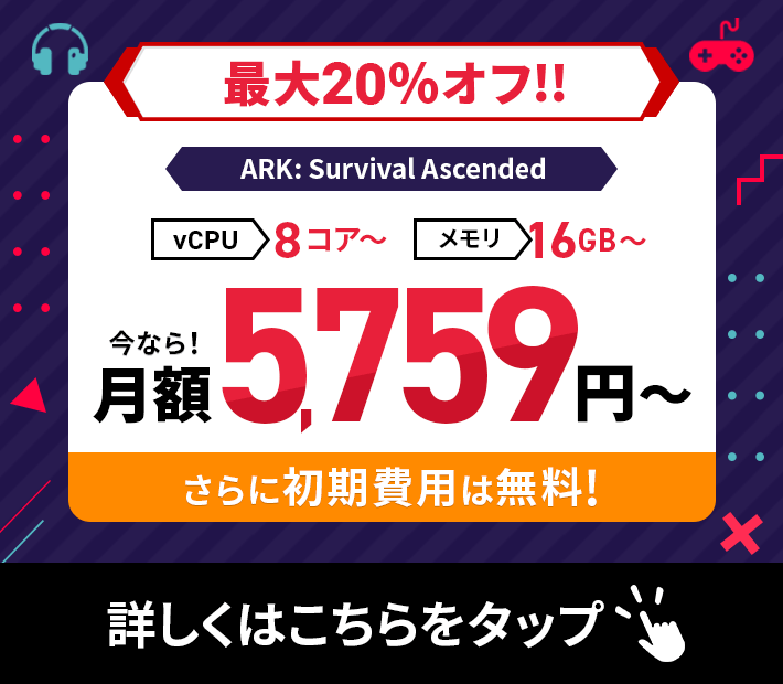 今なら月額5,759円~お得にARK: Survival Ascendedのサーバーを立ち上げられます!