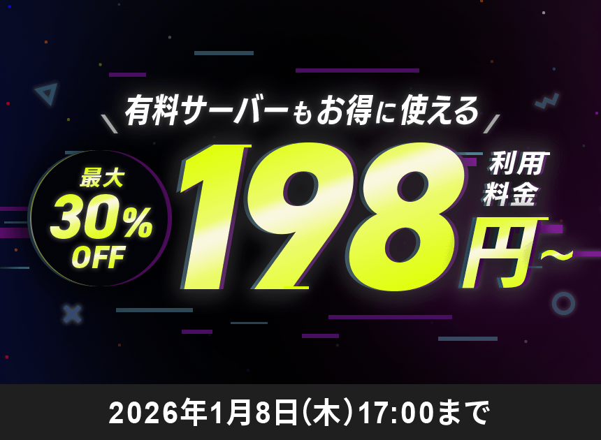 レンタルサーバーの国内シェアNo.1※「エックスサーバー」が提供する『XServer GAMEs』では、2026年1月8日17時まで最大30%OFFキャンペーンを開催中!