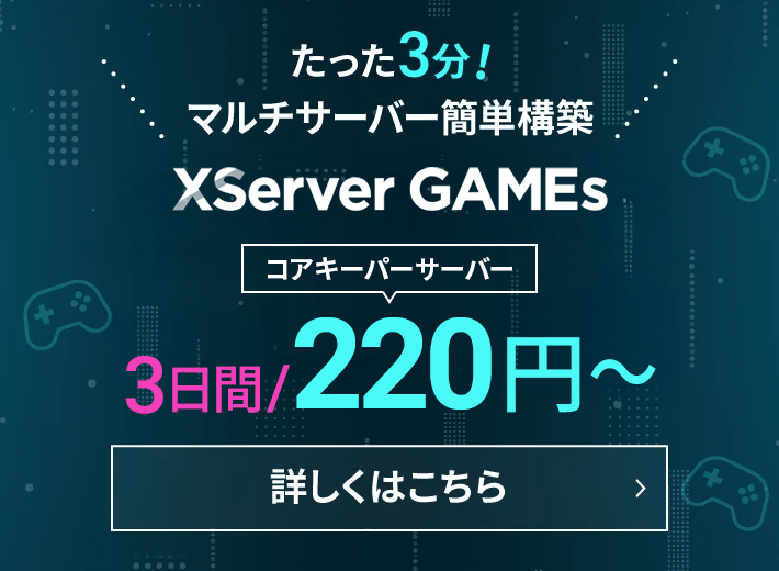 レンタルサーバーの国内シェアNo.1※「エックスサーバー」では、コアキーパーに最適なゲーム専用サーバー『XServer GAMEs』を提供中!