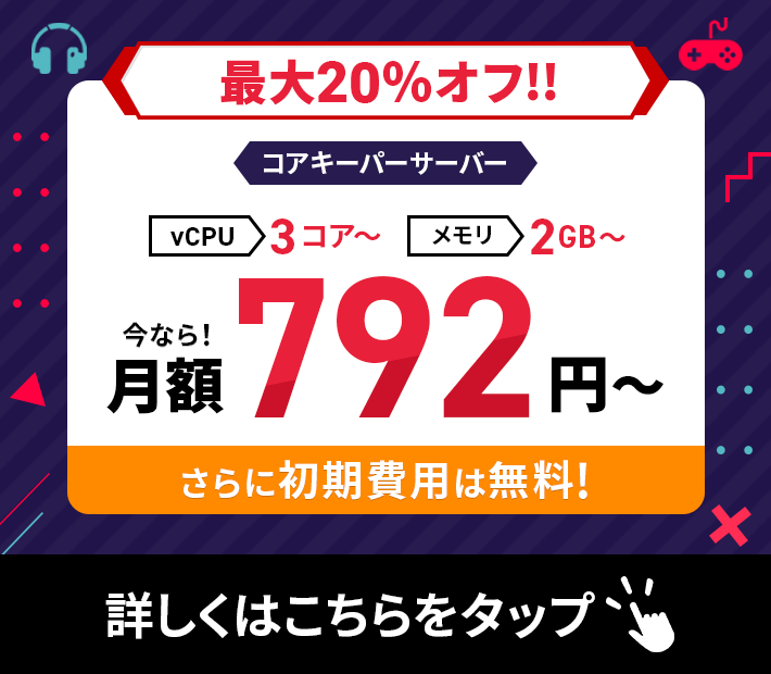今なら月額792円~お得にコアキーパーのサーバーを立ち上げられます!